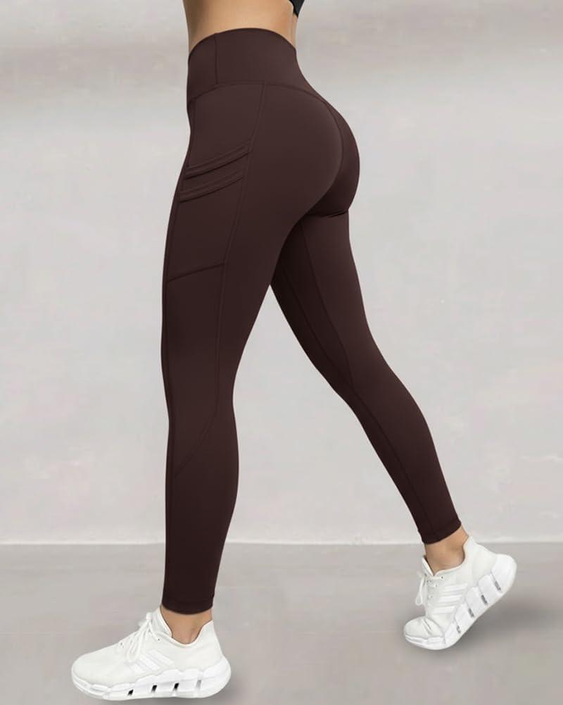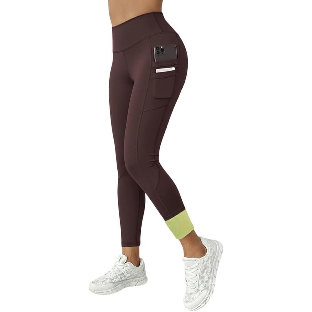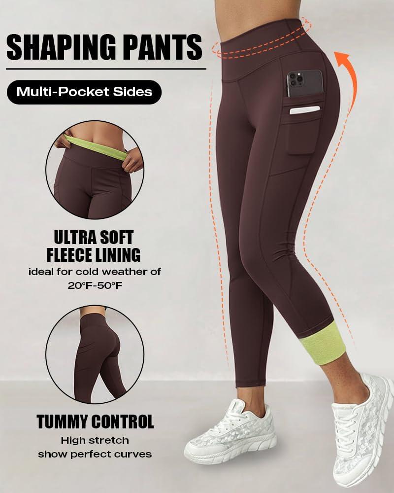 CHICME Fleece Lined Leggings Women 2025 Tummy Control Thermal Warm High Waisted Winter Yoga Pants with Pockets(Brown-with Pocket)