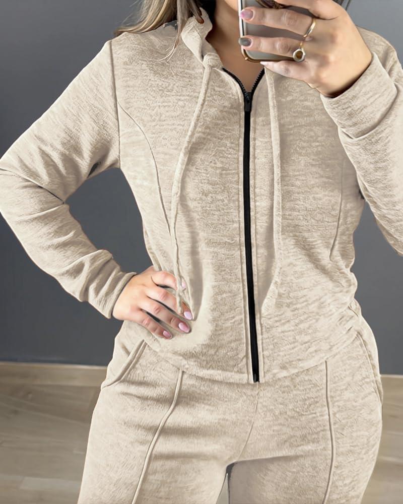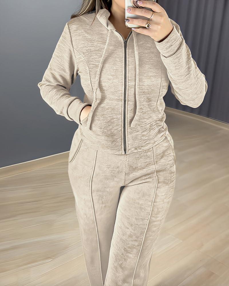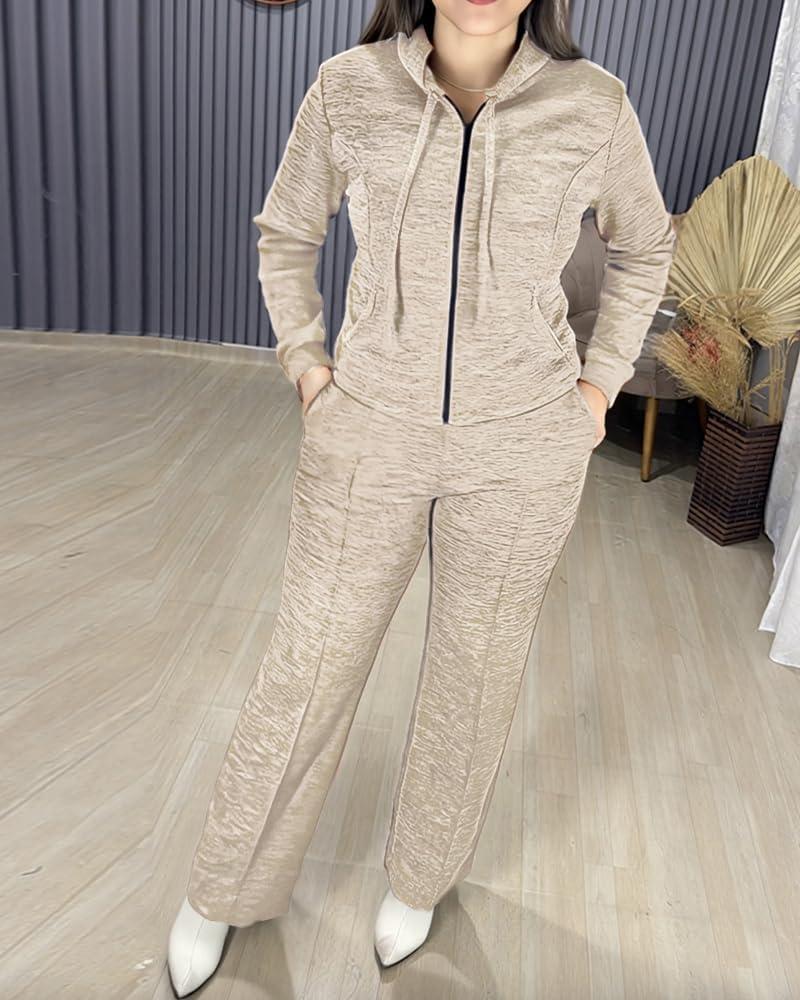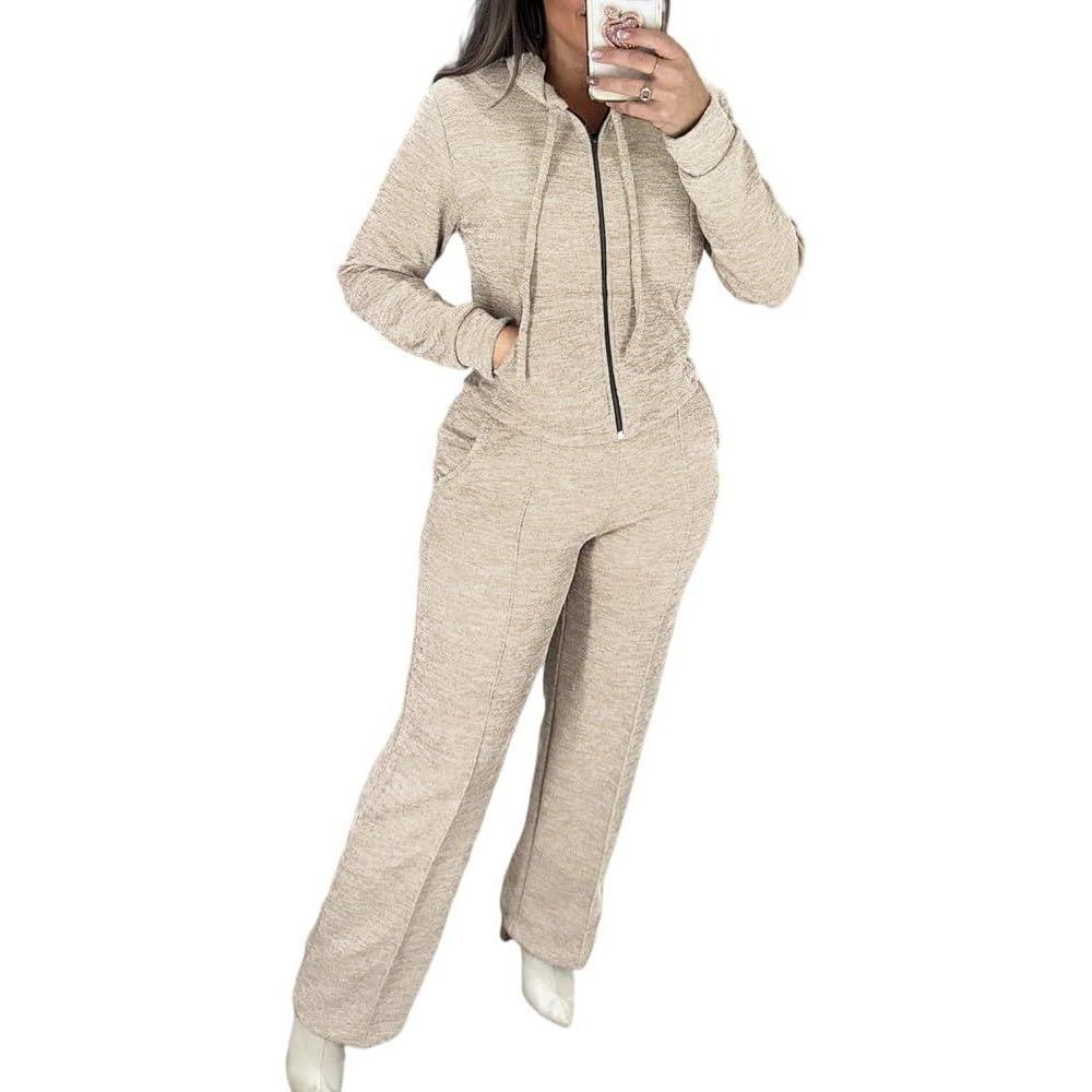 CHICME Womens 2 Piece Outfits Sweatsuit 2025 Zip Up Hoodie and Wide Leg Sweatpants Tracksuit Travel Workout Lounge Sets(Apricot)