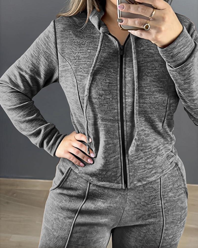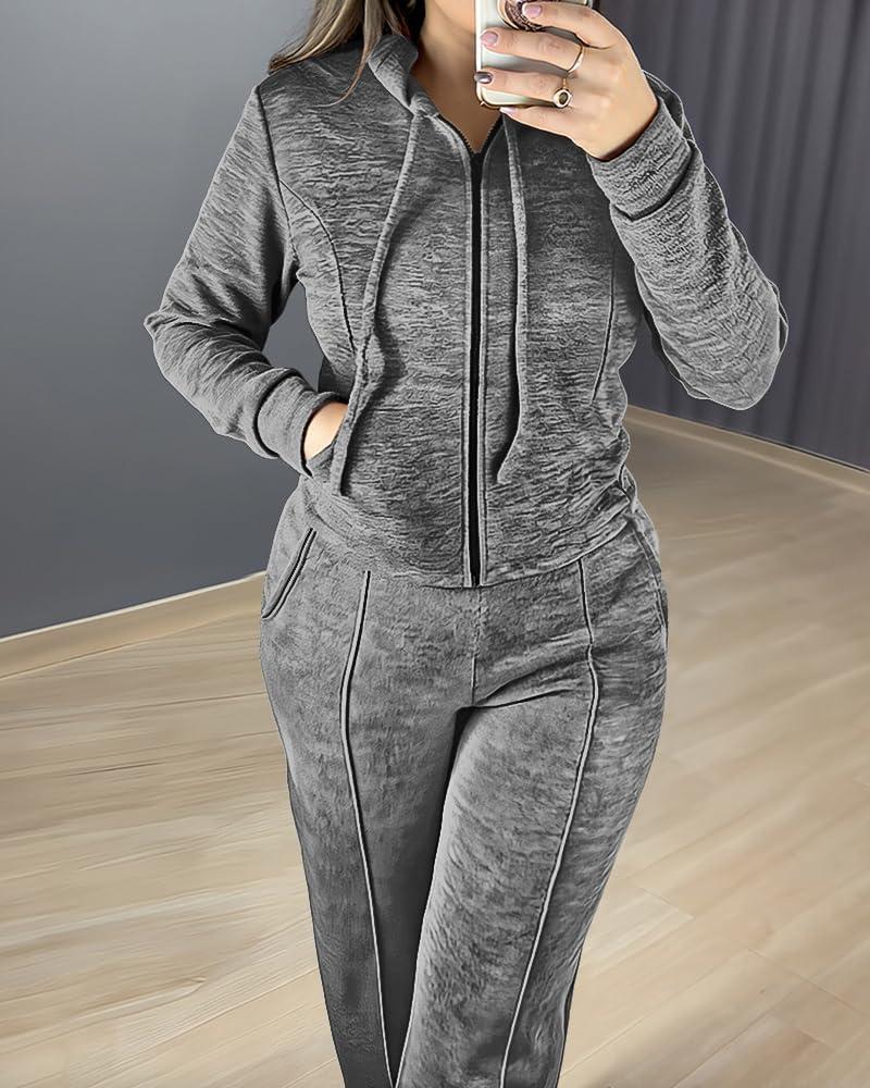 imageCHICME Womens 2 Piece Outfits Sweatsuit 2025 Zip Up Hoodie and Wide Leg Sweatpants Tracksuit Travel Workout Lounge SetsGray
