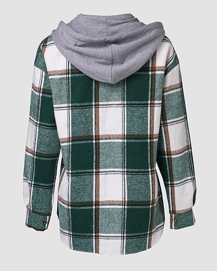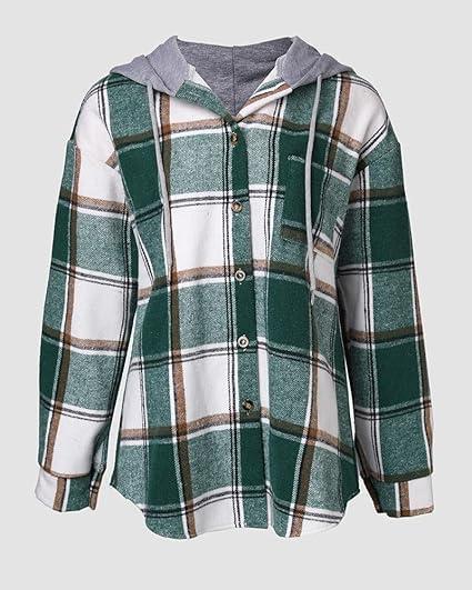 CHICME Womens Lightweight Casual Jacket 2025 Plaid Long Sleeve Shacket Fleece Lined Hooded Jackets Warm Coat(A-green)