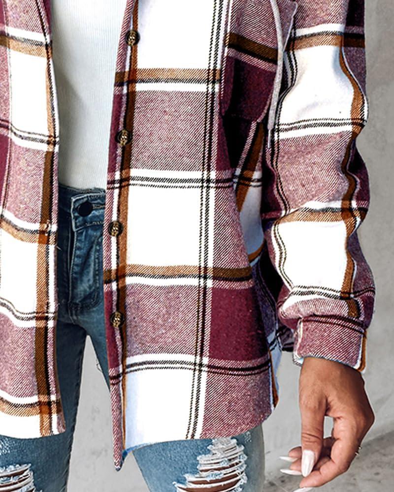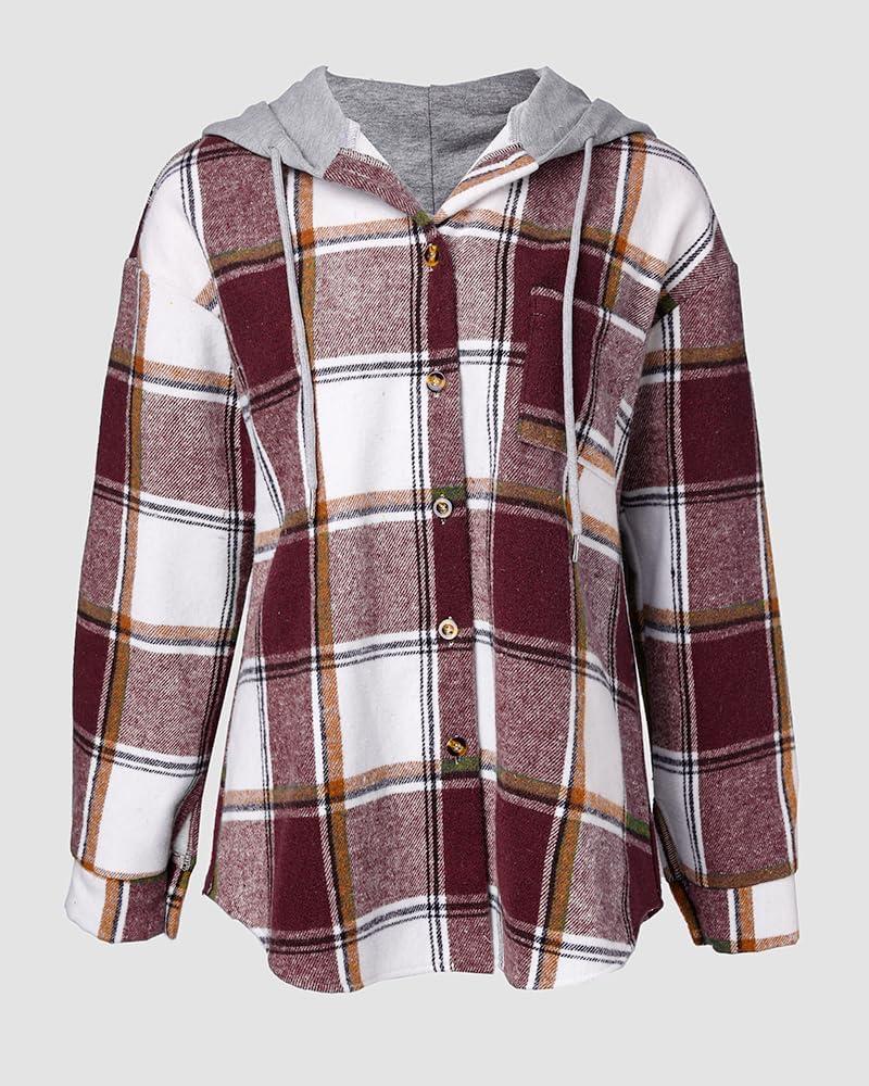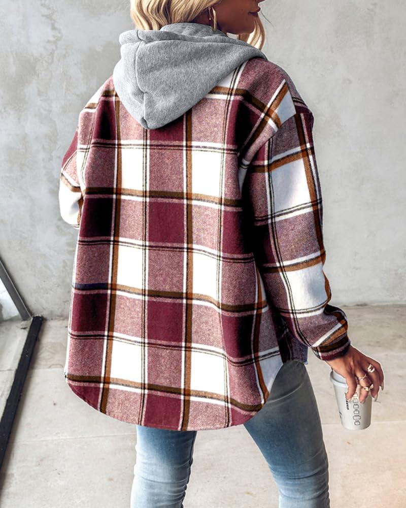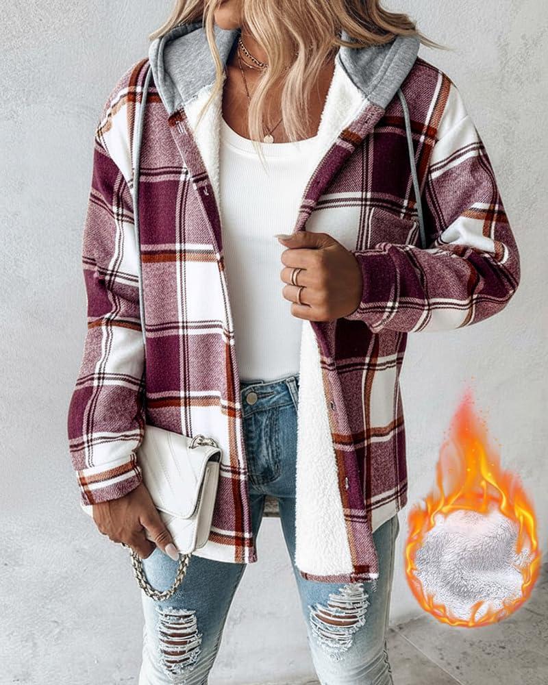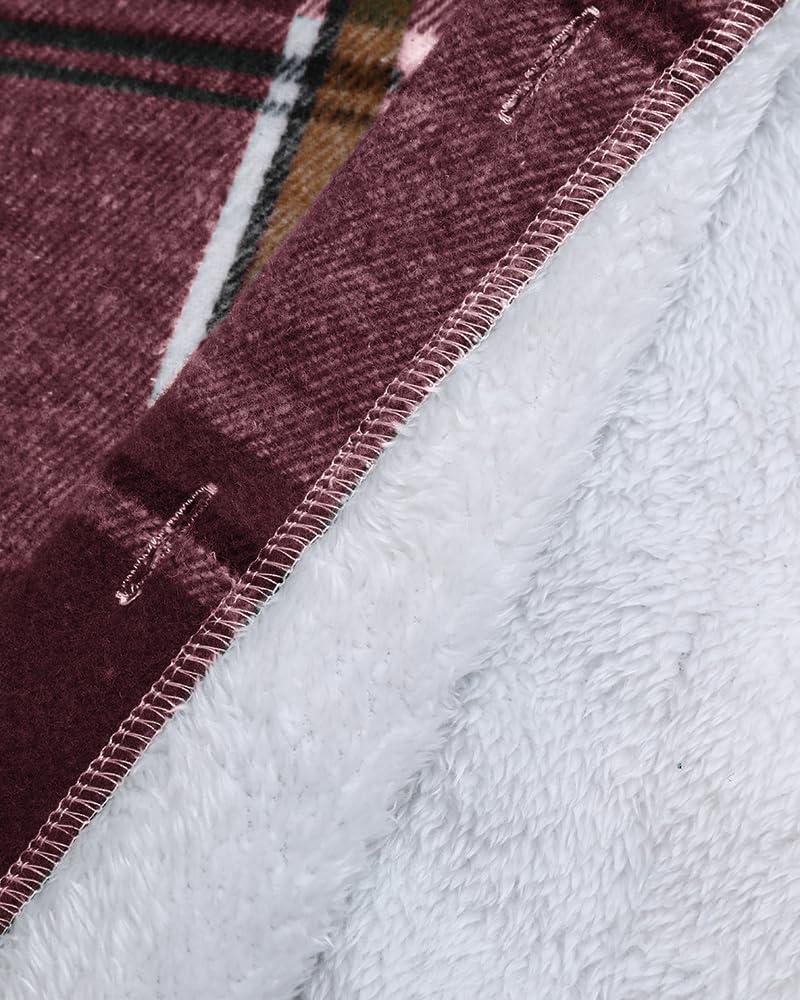CHICME Womens Lightweight Casual Jacket 2025 Plaid Long Sleeve Shacket Fleece Lined Hooded Jackets Warm Coat(Red)