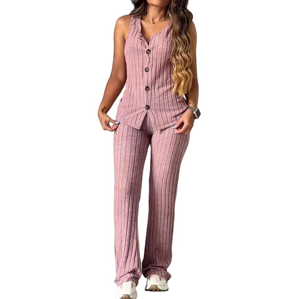 CHICME Womens Pajamas Sets 2 Piece Loungewear Spring 2026 Sleeveless Top and Loose Striped Pants Pj Sets(Pink)