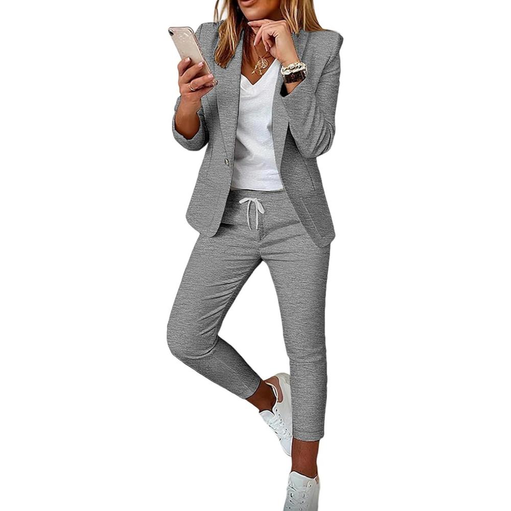 CHICME Womens Suits 2 Piece Set 2025 Notched Collar Blazer and Drawstring Pants Suits Set Casual Business Outfits(Dark Grey)