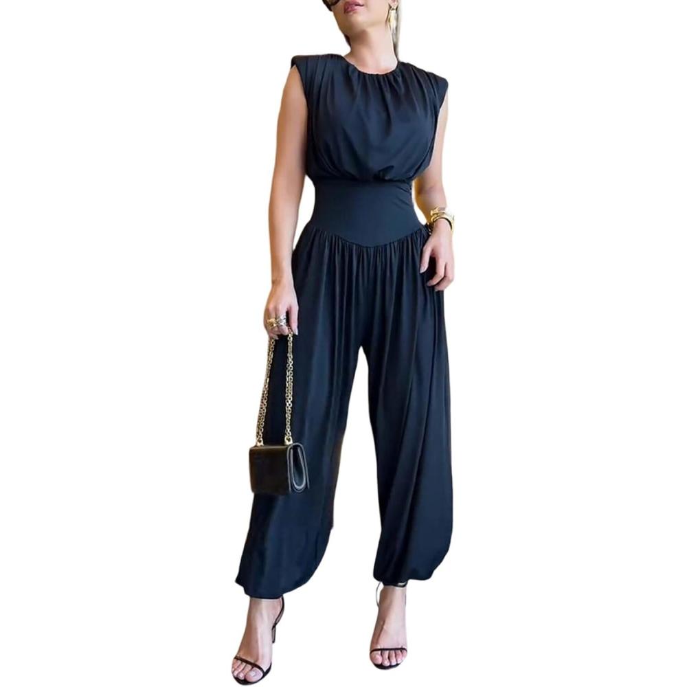 This elegant one piece jumpsuit is made from a soft, breathable blend of 95% polyester and 5% elastane, offering a smooth drape ideal for vacation outfits, summer outfits, and casual outfits for women. Designed with padded shoulders, a cinched waist, a hollow-out back, and high side slits, it creates a flattering and modern silhouette. Easy to style with heels or sandals, it transitions effortlessly from dressy jumpsuits for women to relaxed everyday looks. Perfect for dinners, brunch, nights out, and resort getaways, making it a chic choice for women seeking versatile jumpsuits and date night rompers