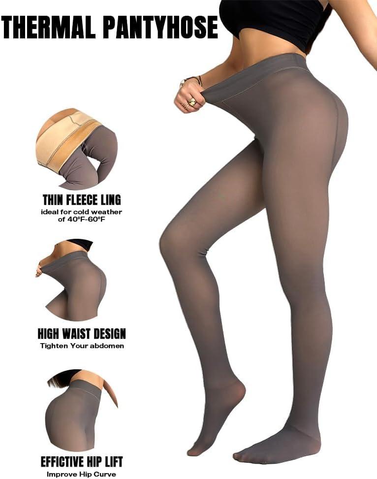 CHICME Womens Thick Fleece Lined Transparent Tights 2025 High Waist Elasticity Thermal Pantyhose Faux Sheer Warm Leggings(C-1pack Gray T.f. (40°f-60°f))